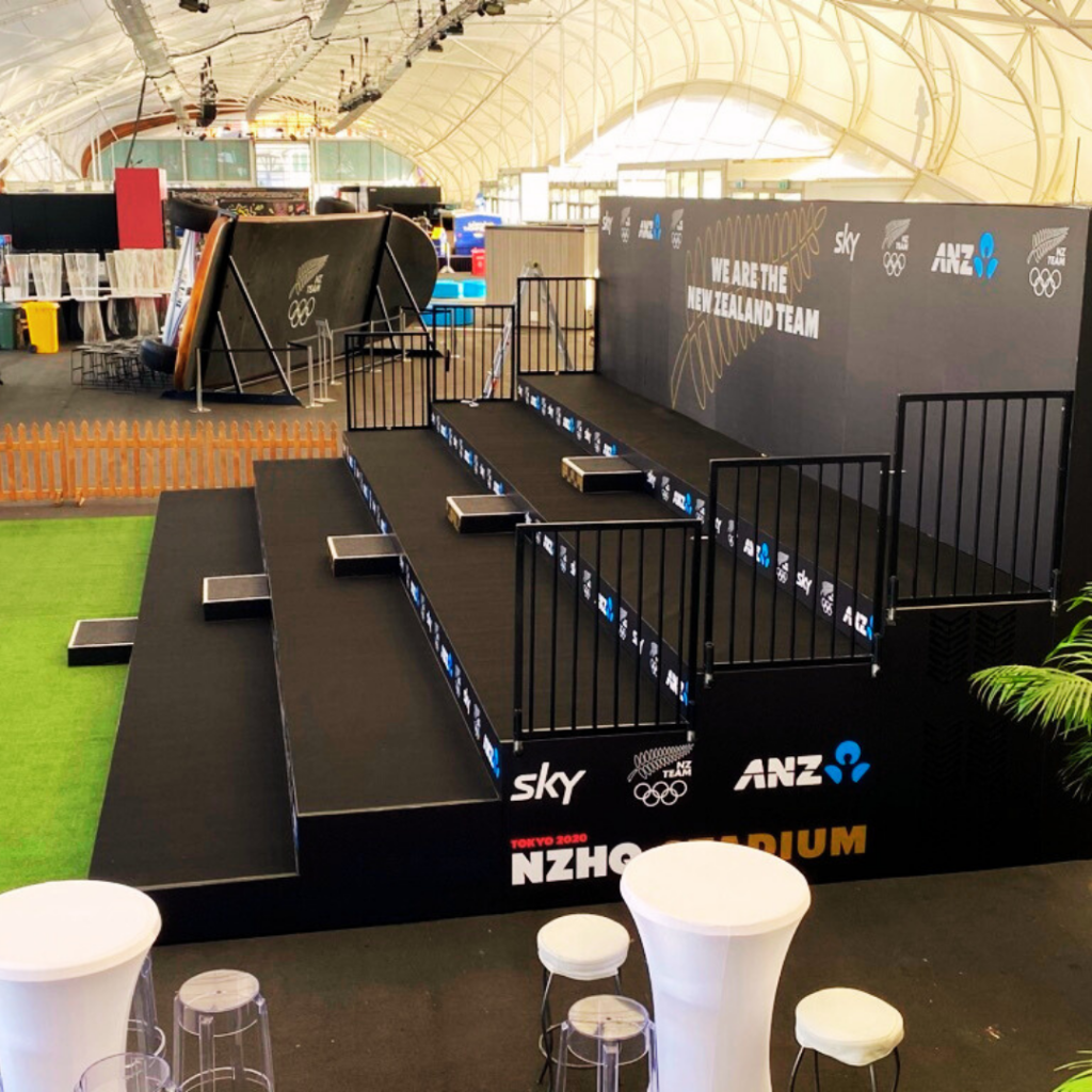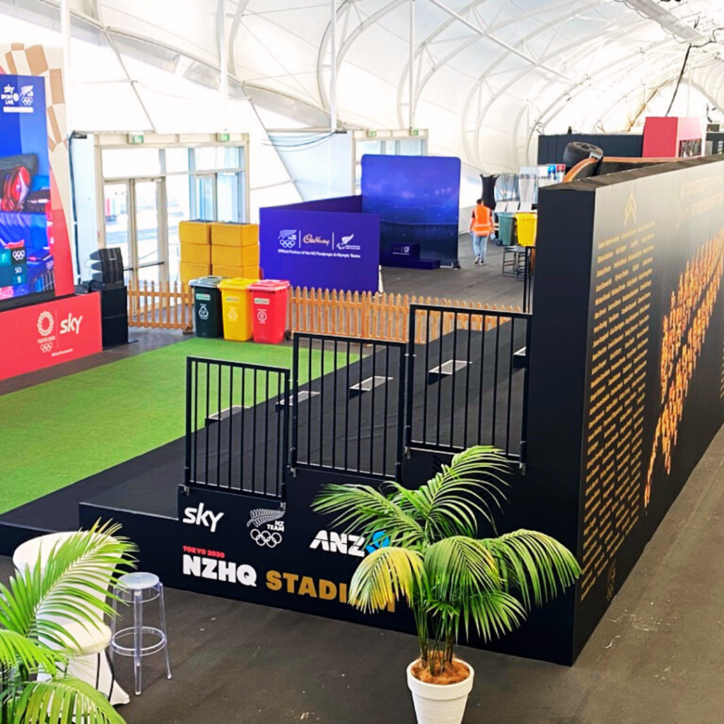Fan zone seating and viewing areas in The Cloud, created for our friends from Kiio and the NZ Olympic Committee