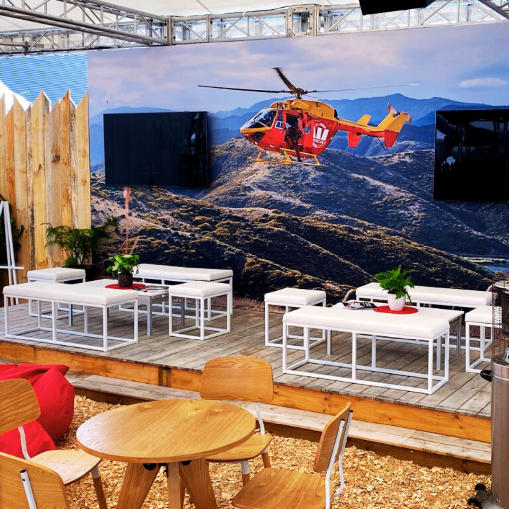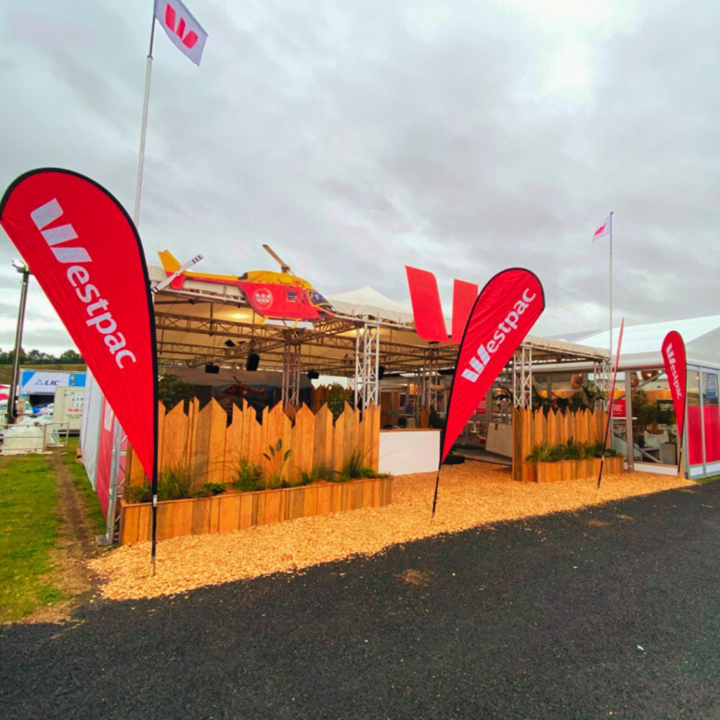 Westpac have a large outdoor hosting site with areas for catering, meetings and seminar sessions as well as promoting the Westpac Rescue Chopper.