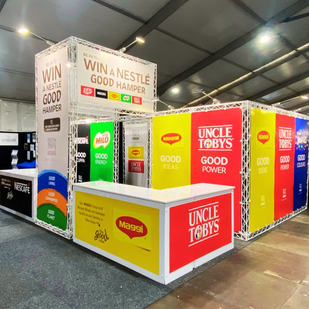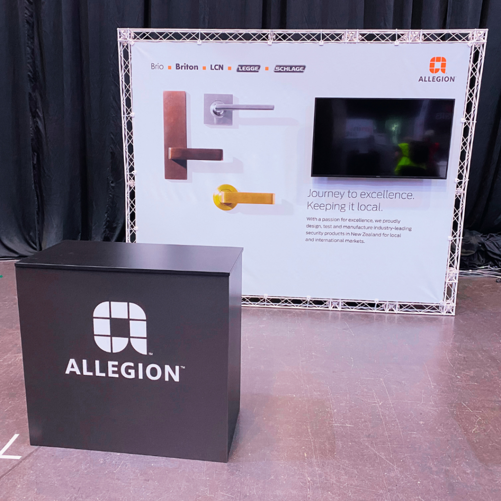 Mini-Truss framing comes in black or white and is a great flexible display product, for simple banners, media walls or entire exhibition stands.